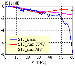 The evaluation of the interdigital capacitors will be compared with the corresponding microstrip model of Libra. The best match between CPW and MS edged coupled lines will be achieved with a 50W MS configuration (h=150mm, w=100mm). This FD-simulator version does not take transmission line effects into account. The IDC was assumed to be ideal lumped. This will lead to a simulation inaccuracy especially for long IDC fingers and a small number of fingers. In the new version of COPLAN/ADS, the distributed properties of this element is taken into account. The second example shows the results of the old and new simulation method, where the new simulation has been achieved by utilizing a model of N+2 (N fingers and 2 ground strips) coupled lines instead of a lumped element.
